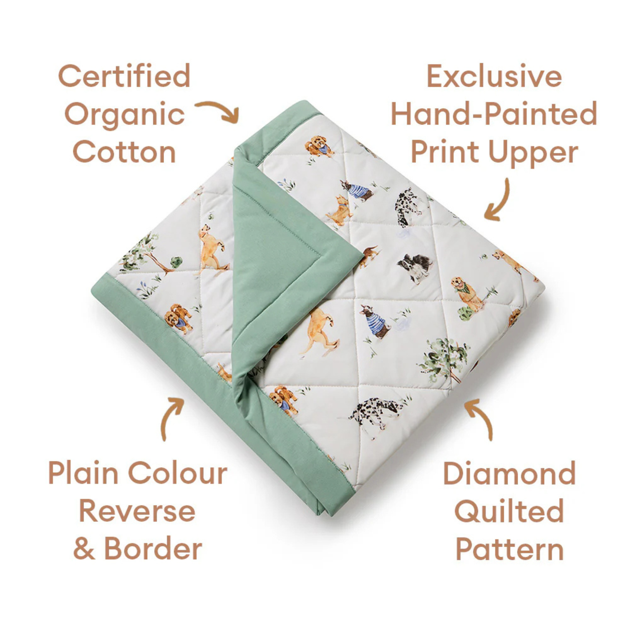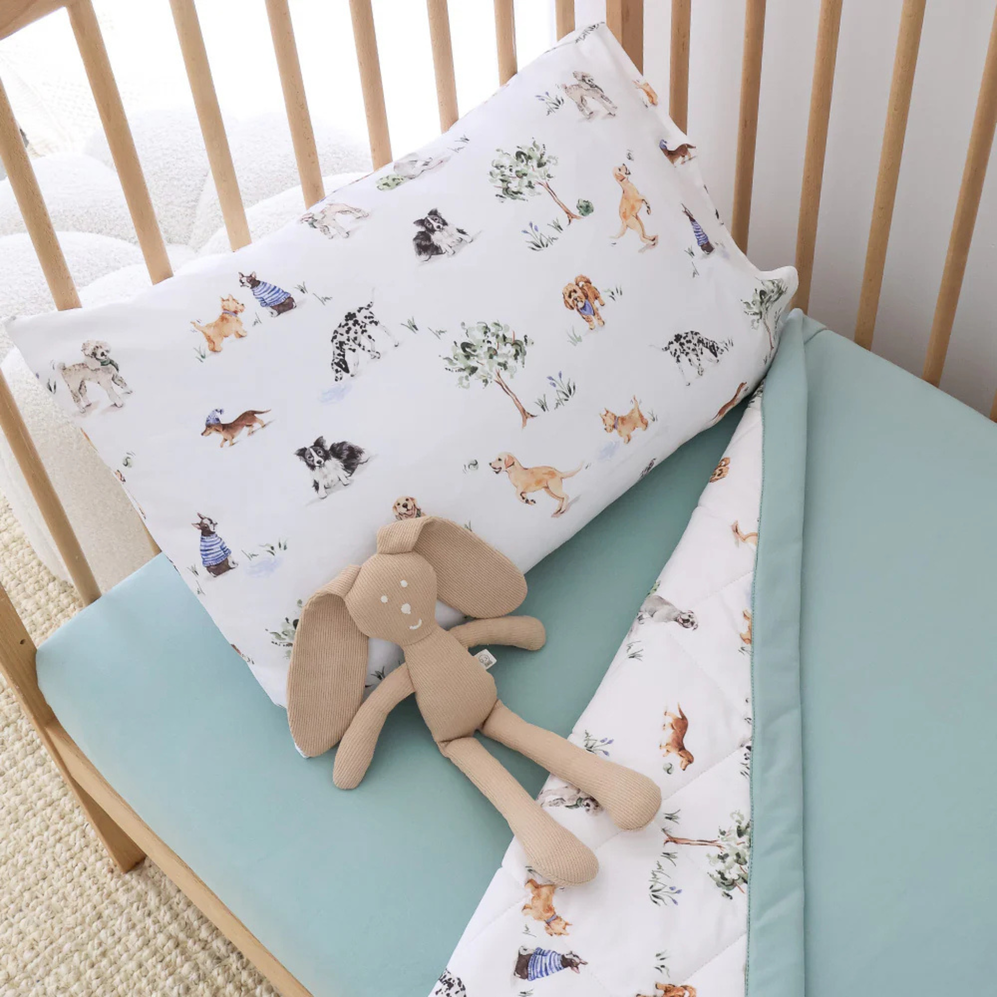 Crafted from Snuggle Hunny’s signature SnuggleSoft organic jersey cotton, this beautifully quilted comforter feels gentle against the skin while providing cosy warmth for cooler nights. Featuring the playful Dog Park print on one side and a calming sage reverse, it’s fully reversible, allowing you to switch up the look of your child’s space with ease.