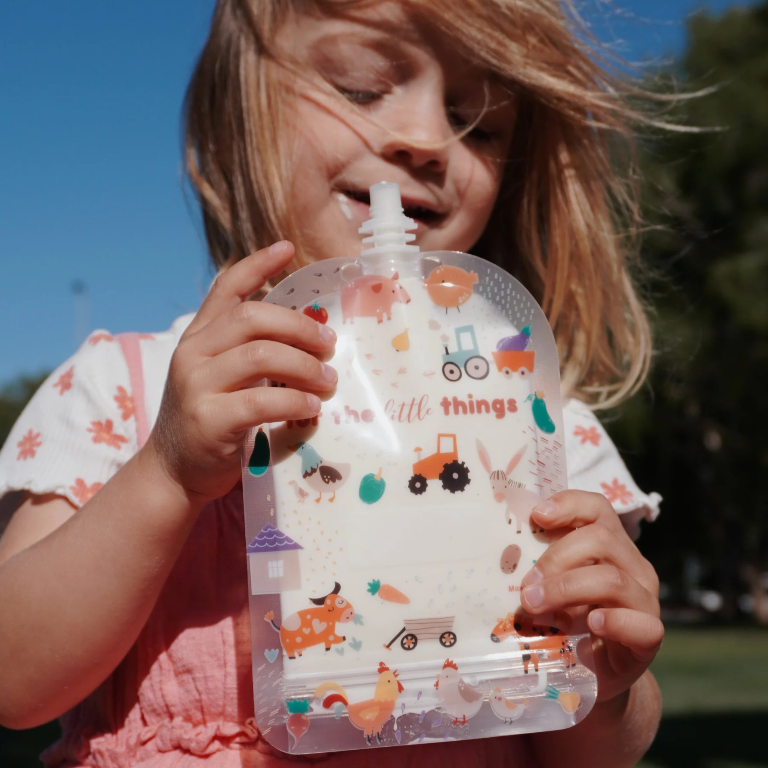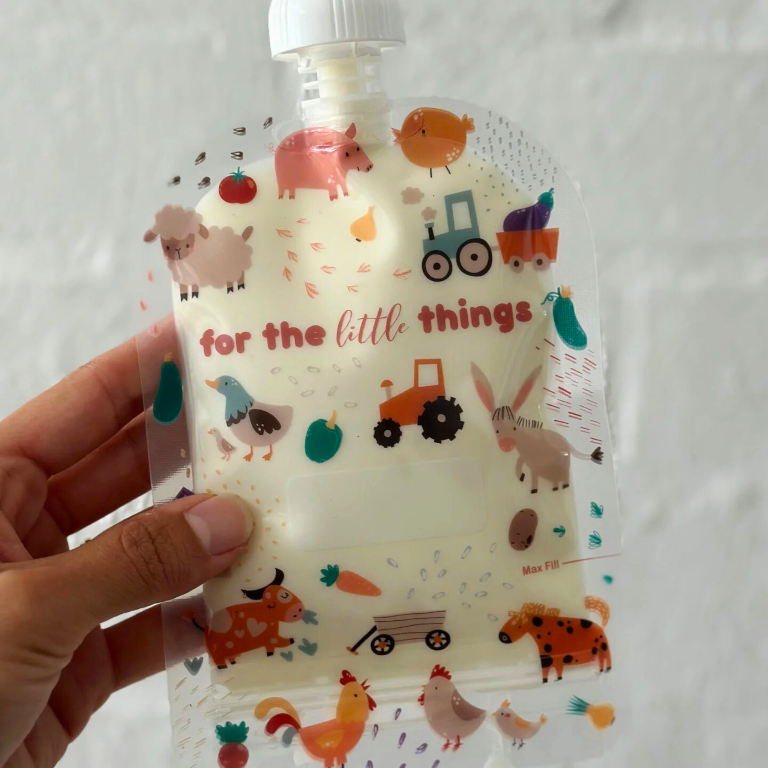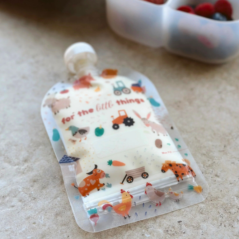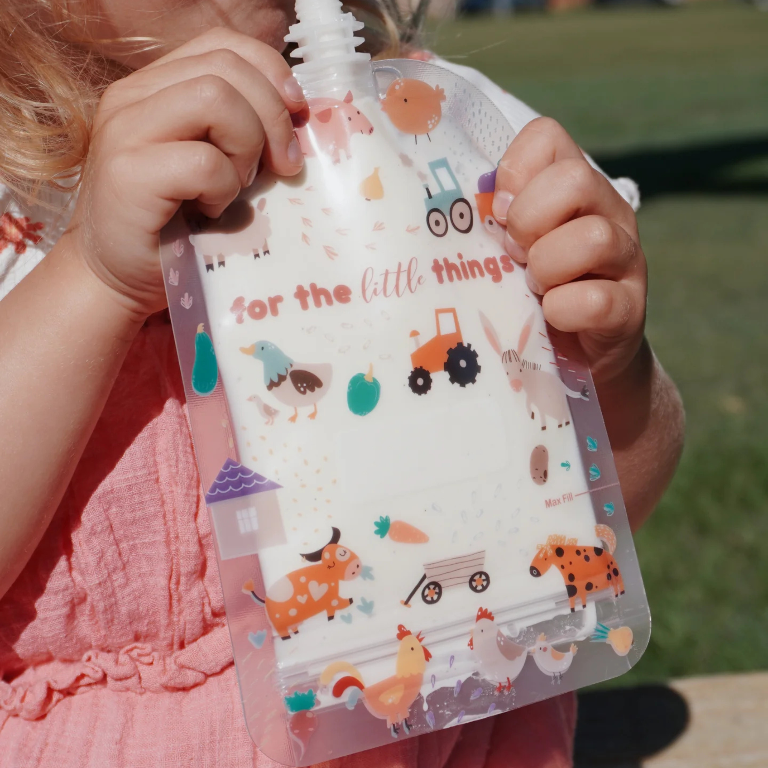 Sinchies reusable 150ml food pouches - farmyard friends